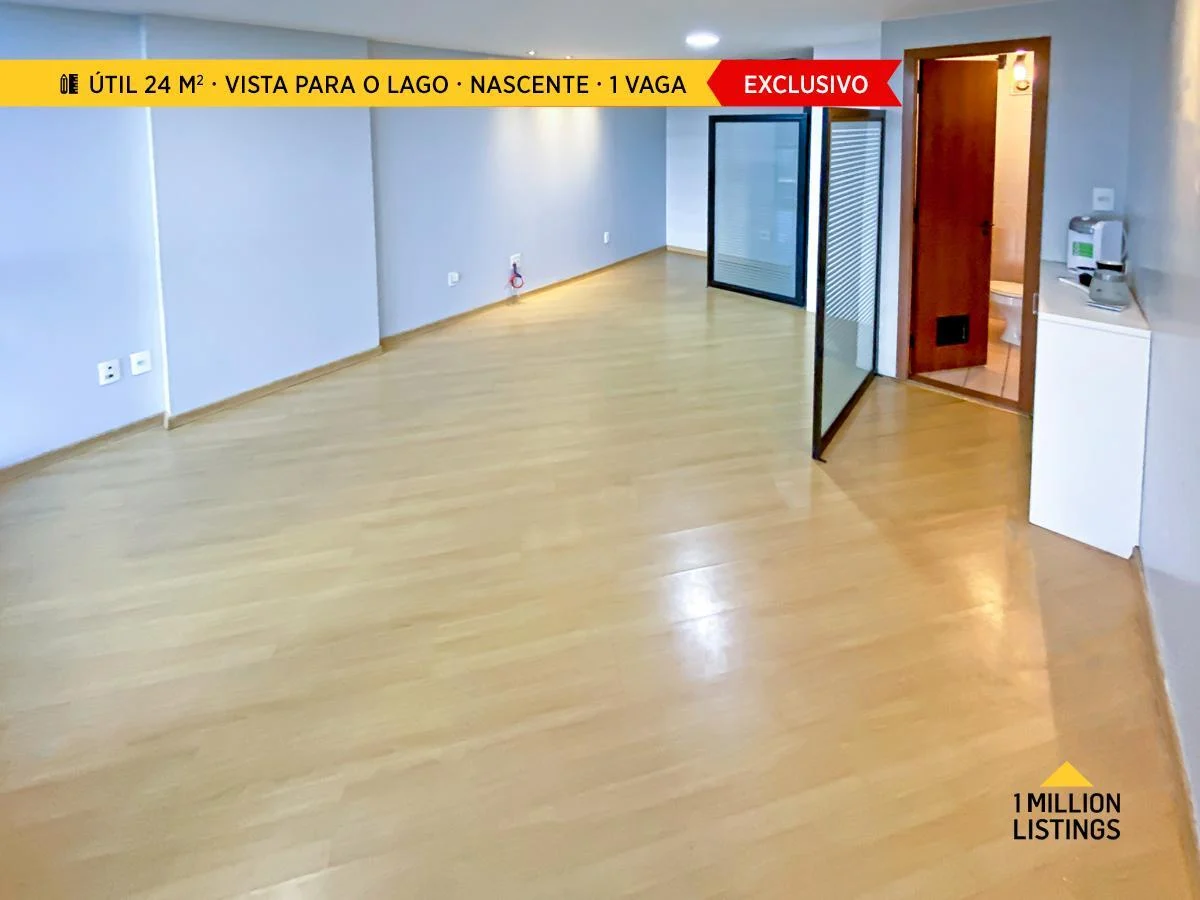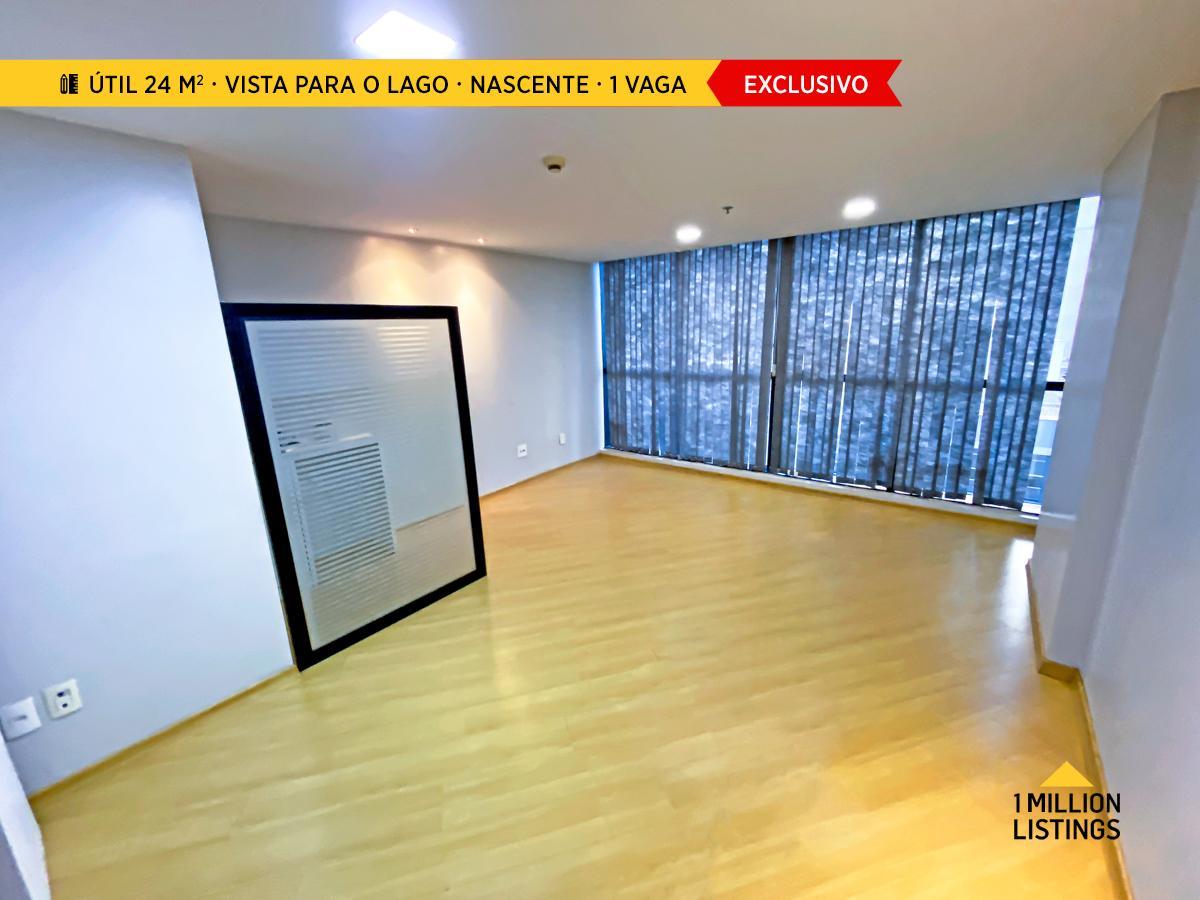 Sala com vista para o Lago Paranoá e garagem inclusa.
